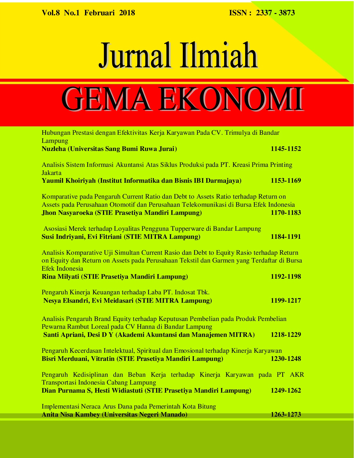 Nesya Elsandri, Evi Meidasari PENGARUH KINERJA KEUANGAN TERHADAP LABA PADA PT. INDOSAT Tbk
